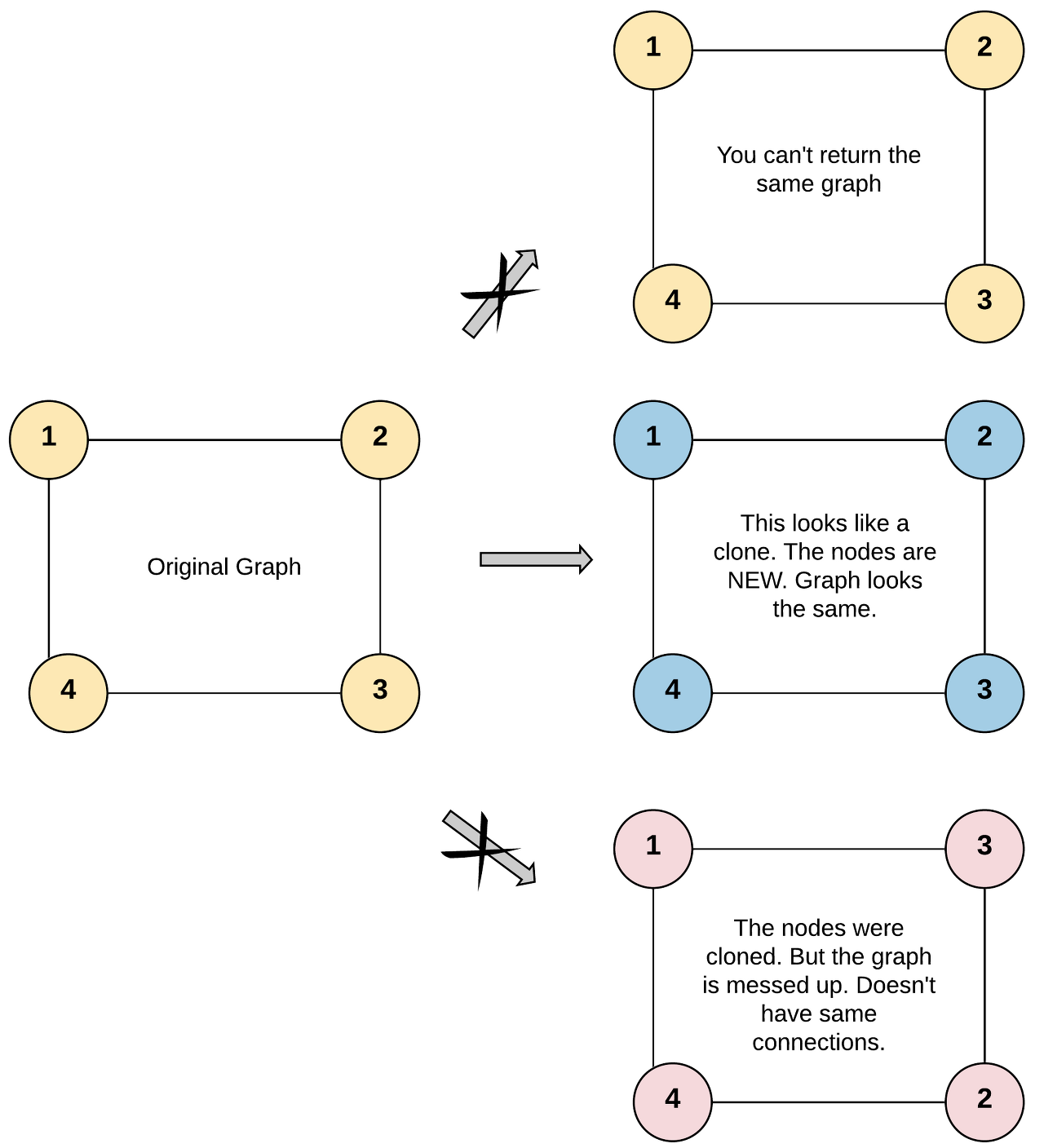 주어진 노드는 항상 가 있는 첫 번째 노드가 됩니다 val = 1. 복제된 그래프에 대한 참조로 지정된 노드의 복사본을 반환해야 합니다 .